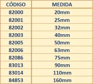 110mm, 160mm, 20mm, 25mm, 32mm, 40mm, 50mm, 63mm, 75mm, 90mm